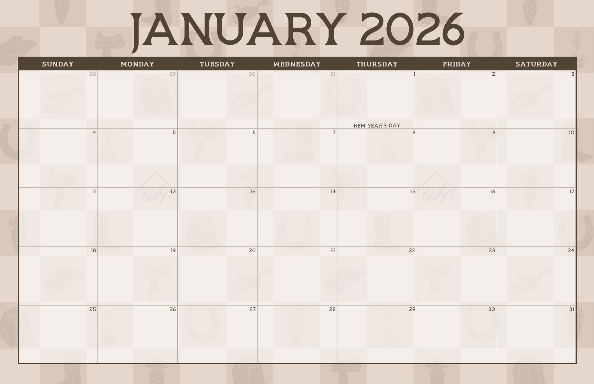 Hang it on the wall or leave in on your desk, it has enough room to write even the most chaotic schedules. The Checked Out design is the cutest low-key western design to fit in any home or office.